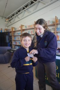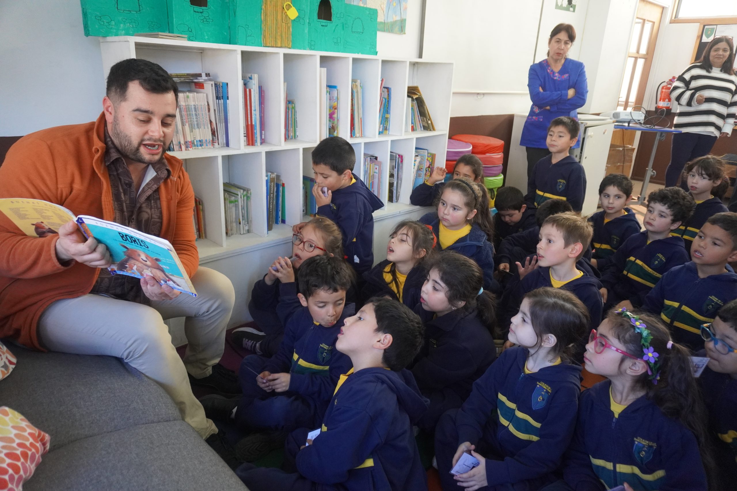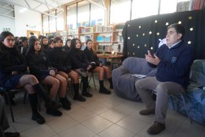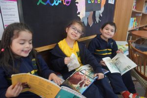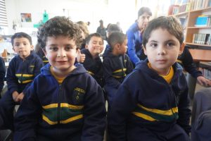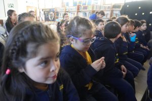 Los alumnos de 1º básico vivieron un momento especial al recibir su credencial de Biblioteca, símbolo de un nuevo camino lector, y culminaron la jornada escuchando un cuento entrañable.